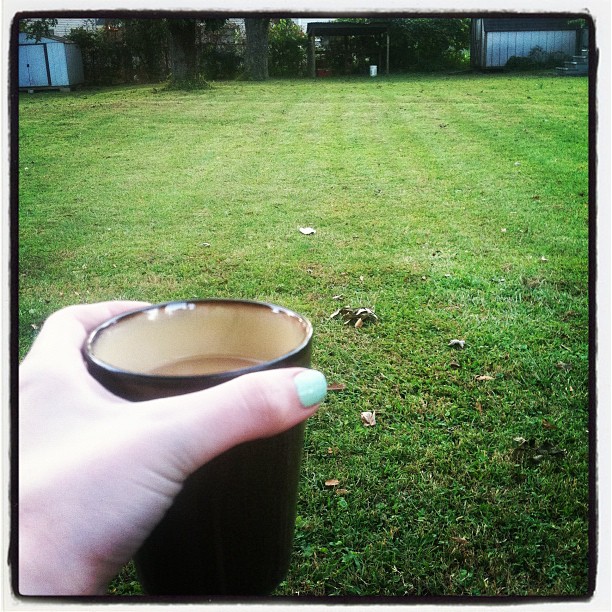 Yesterday was a normal, average, everyday, blah Monday. (Why do Mondays even exist??) But I was able to find some time to enjoy an afternoon/evening cup of coffee outside before dinner. :)
